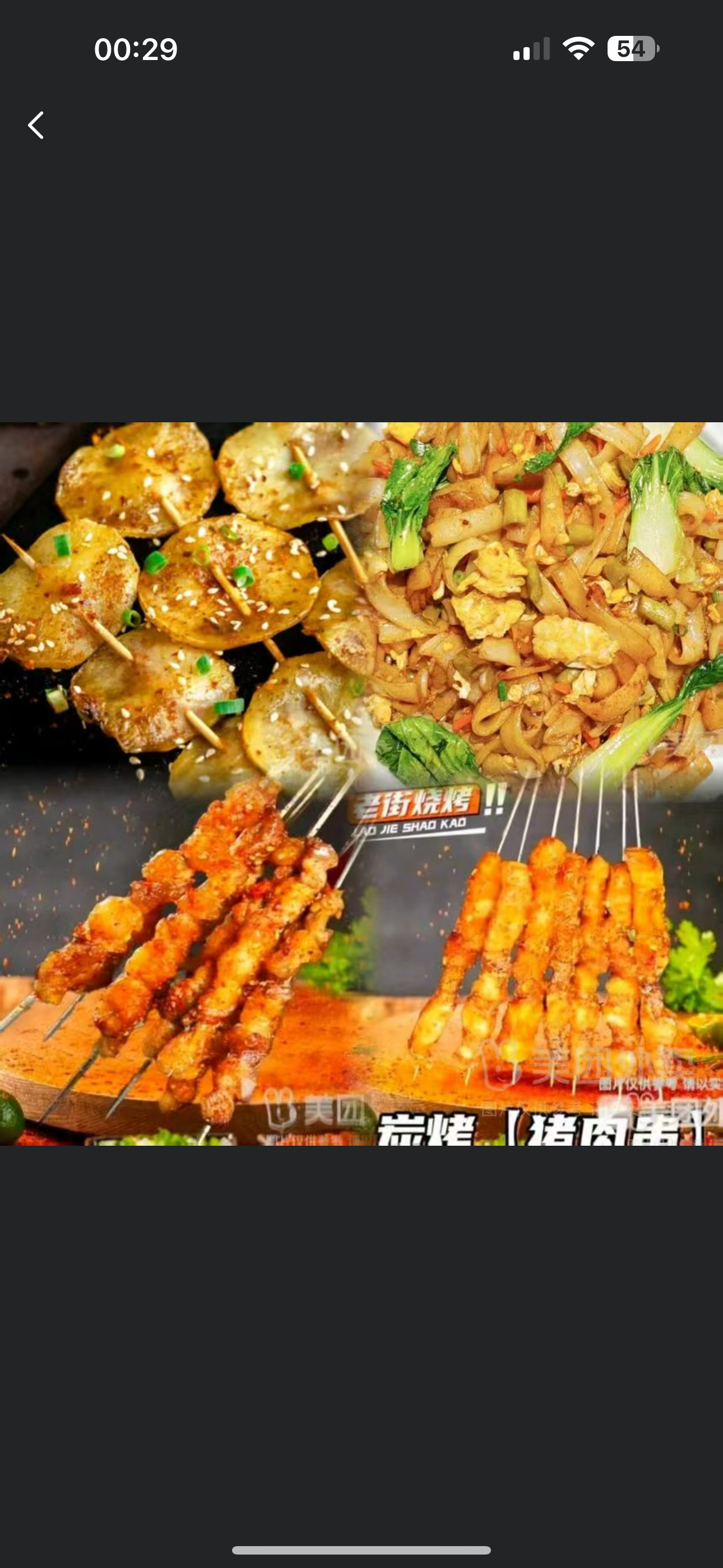 猪肉 5 串+肉筋 5 串+鸡蛋牛肉火腿炒面+土豆+可乐